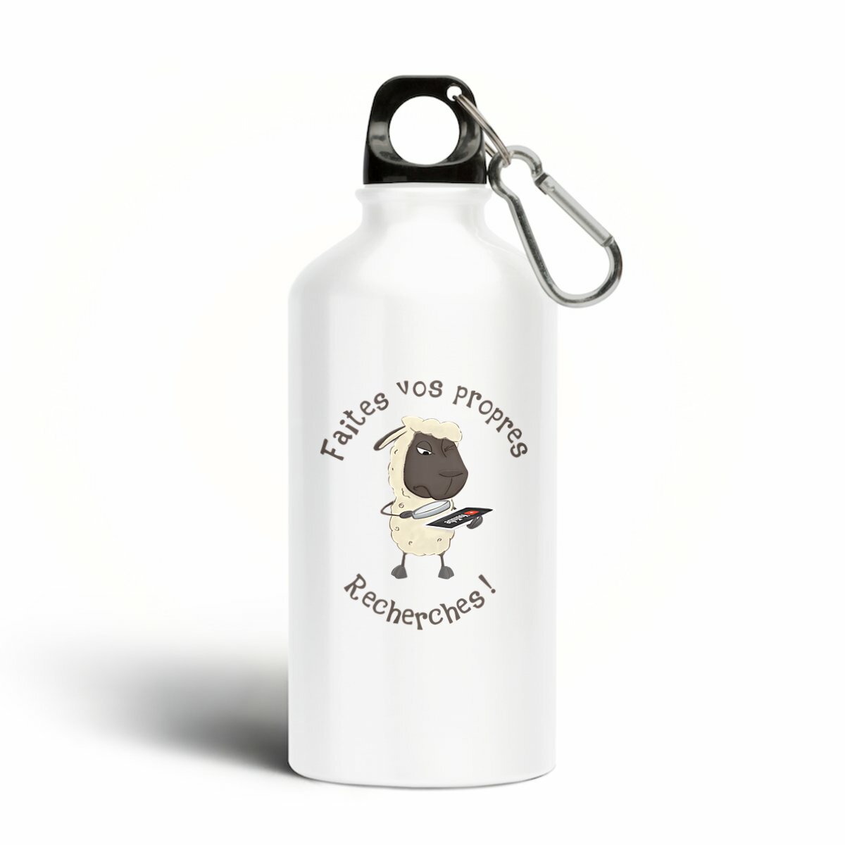Avec son dessin humoristique de mouton chercheur, cette bouteille réutilisable remplace le plastique et te donne le sourire.