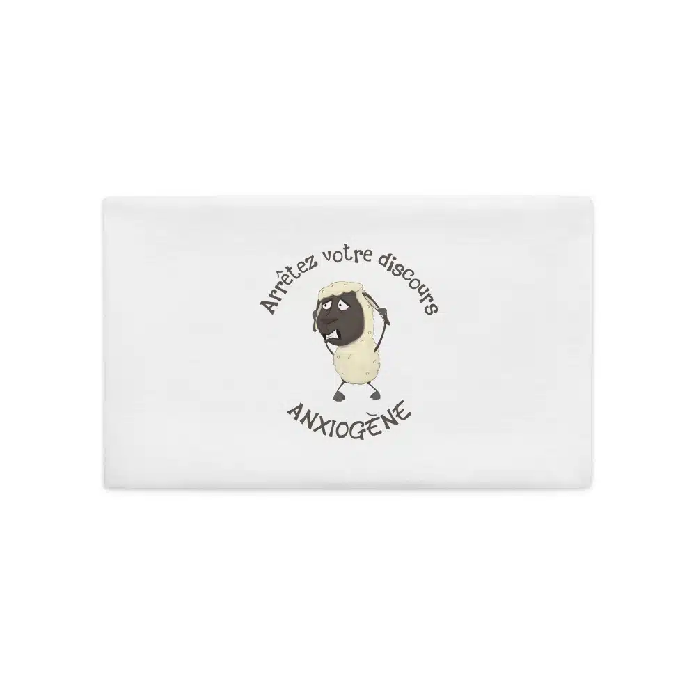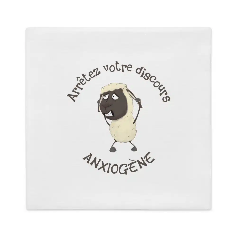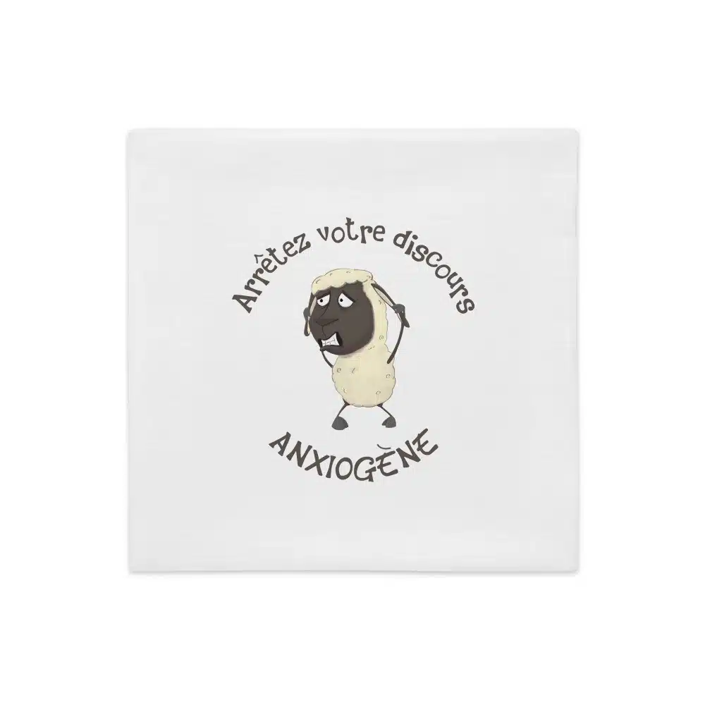 Garde ton coussin sec et propre grâce à cette housse haut de gamme avec le dessin de notre mascotte le mouton angoissé.