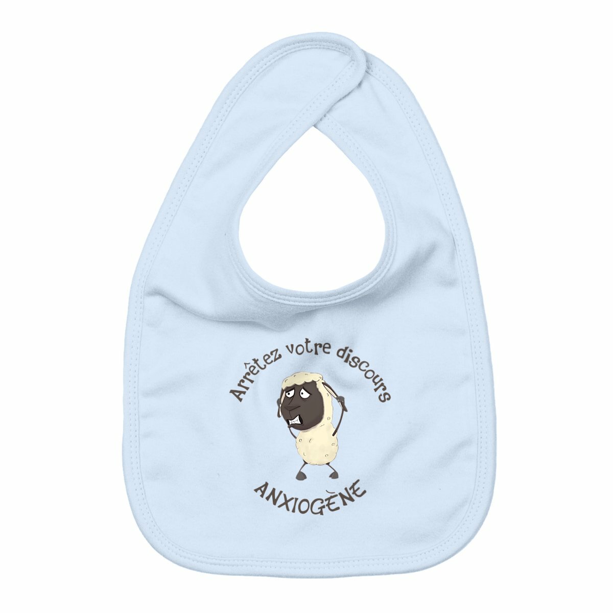 Offre à ton bébé un bavoir de qualité supérieure tout en ajoutant une touche d’humour à ses repas ! Son illustration sarcastique met en scène un mouton angoissé s’exclamant « Arrêtez votre discours anxiogène ! », une pique amusante envers ceux qui refusent d’accepter certaines réalités. Un design à l’humour grinçant, parfait pour les parents amateurs de satire !