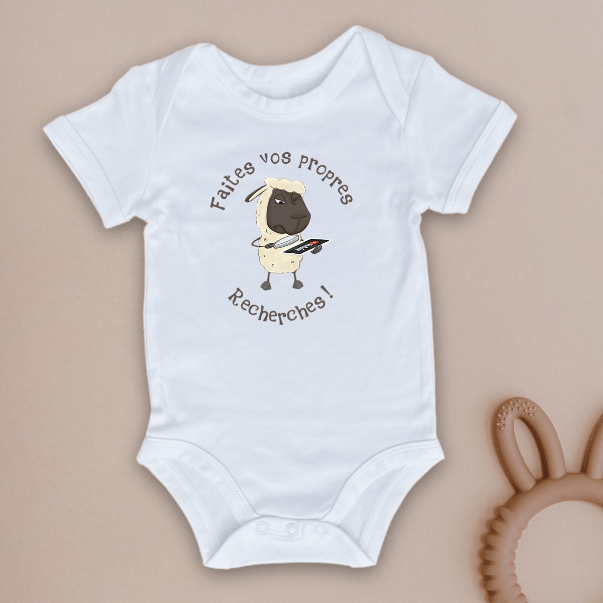 Un body parfait pour les parents adeptes de second degré et les bébés qui, eux, se contentent de découvrir le monde… sans tomber dans le terrier du complot !