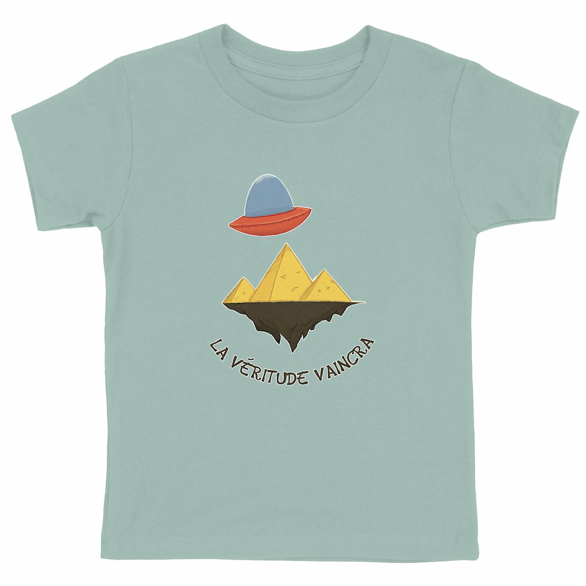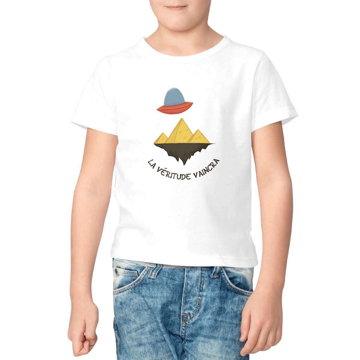 Ose faire porter ce t-shirt en coton bio à ton enfant pour ajouter une touche d’humour et de dérision aux théories les plus improbables !