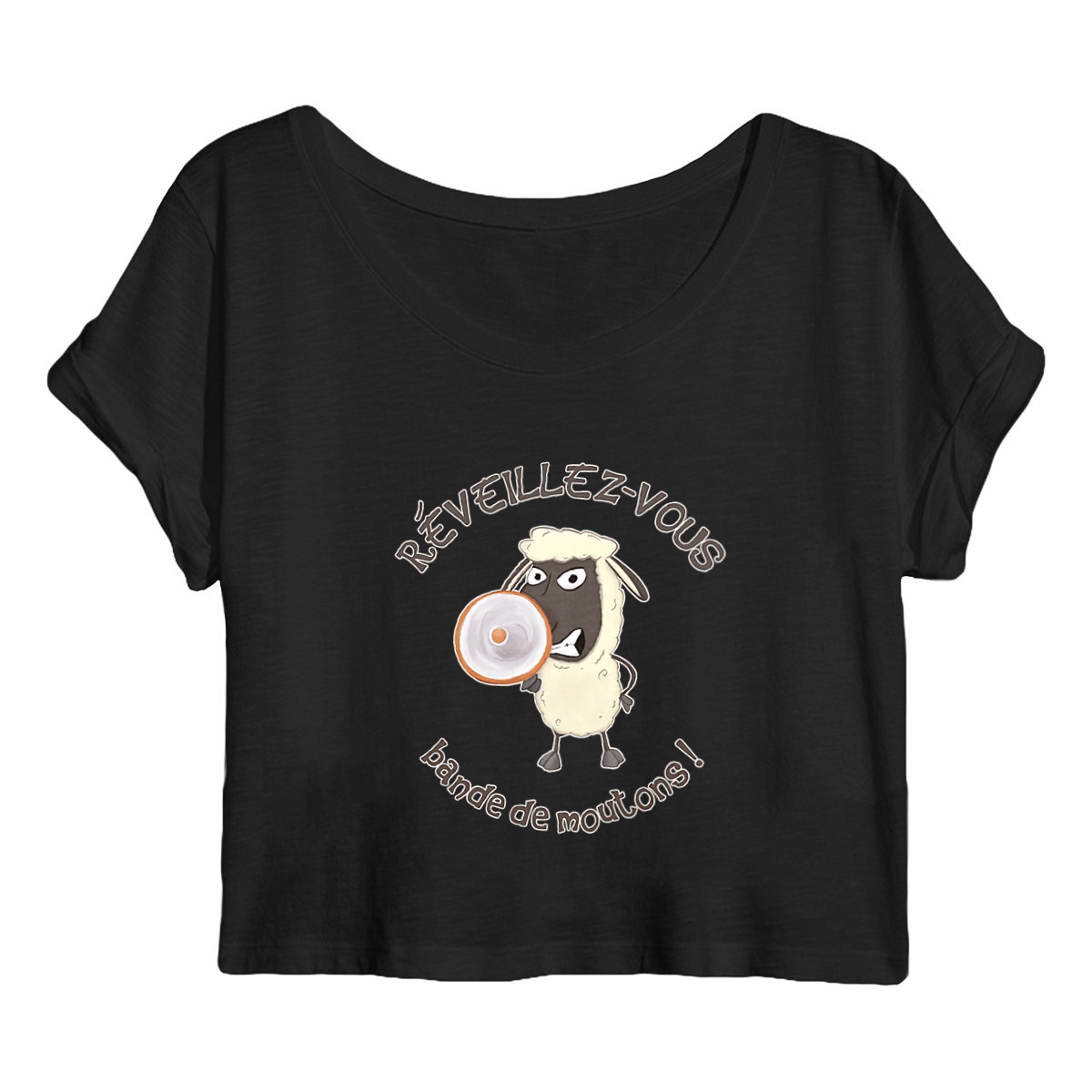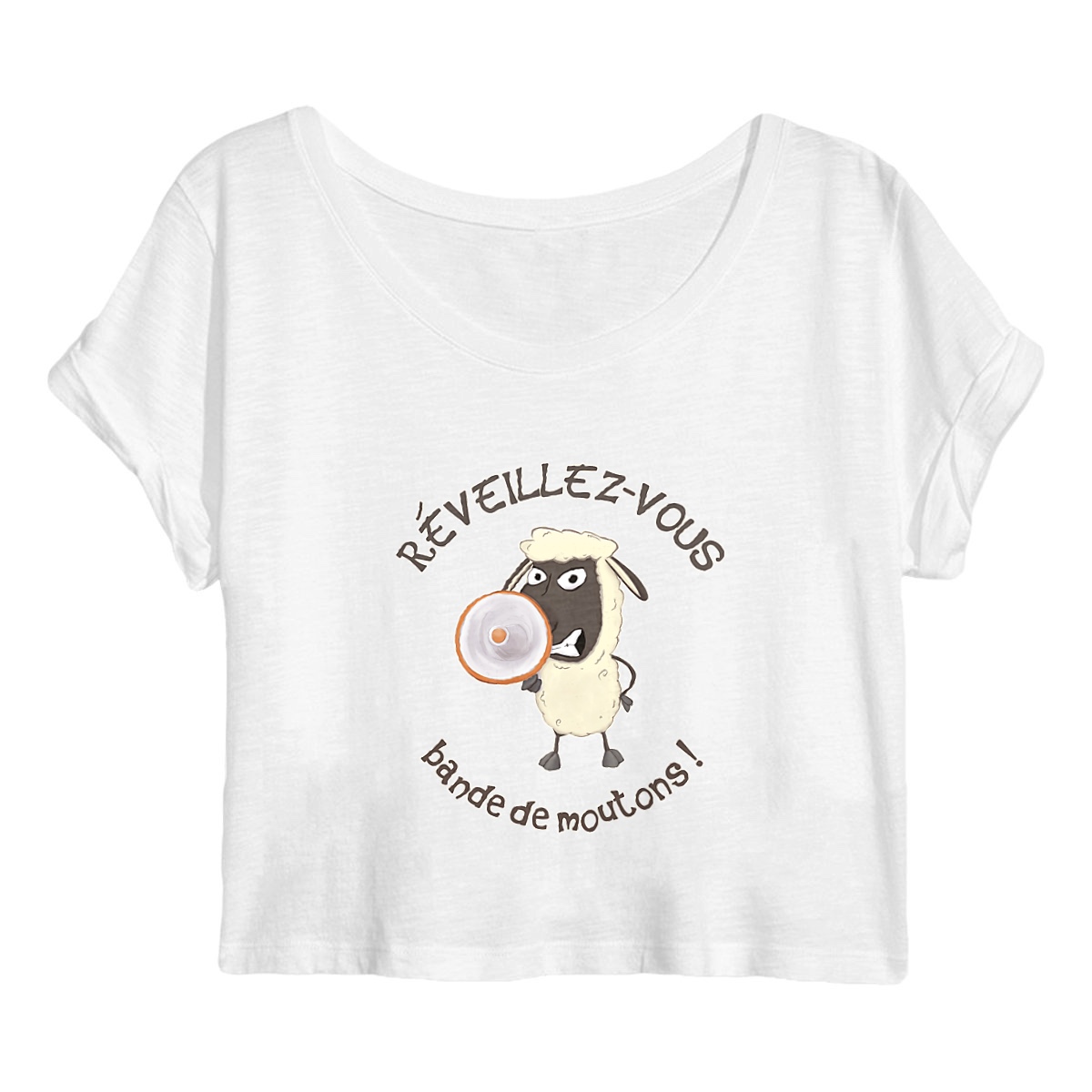 Un crop top comme on les aime : confortable et sarcastique, pour titiller ou divertir ton entourage cet été. Réveillez-vous, bande de moutons !