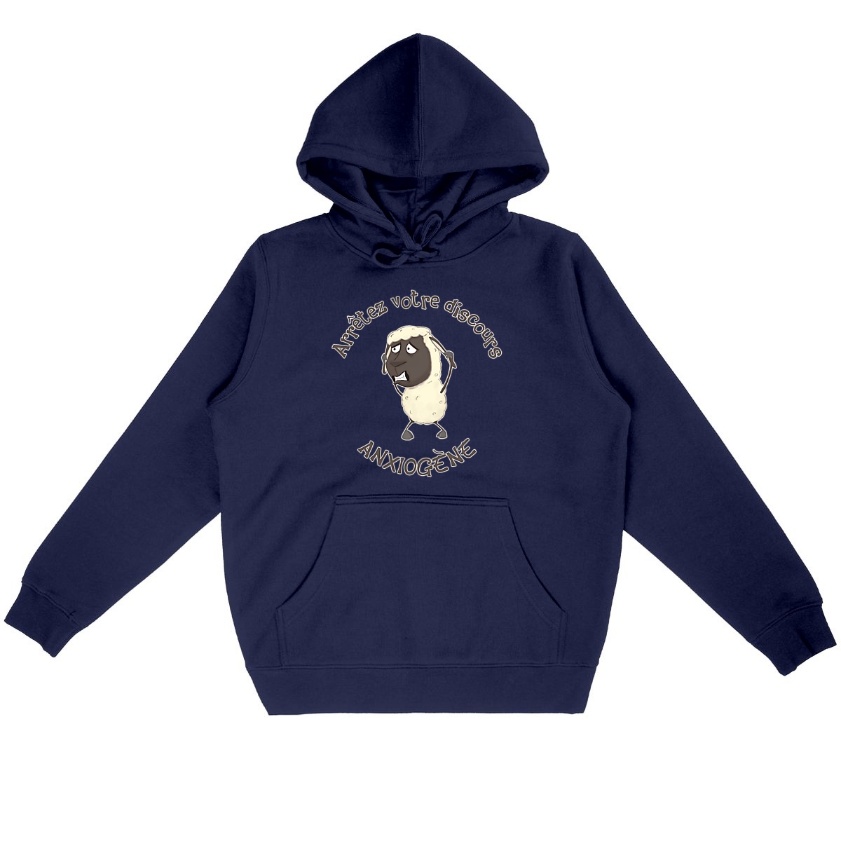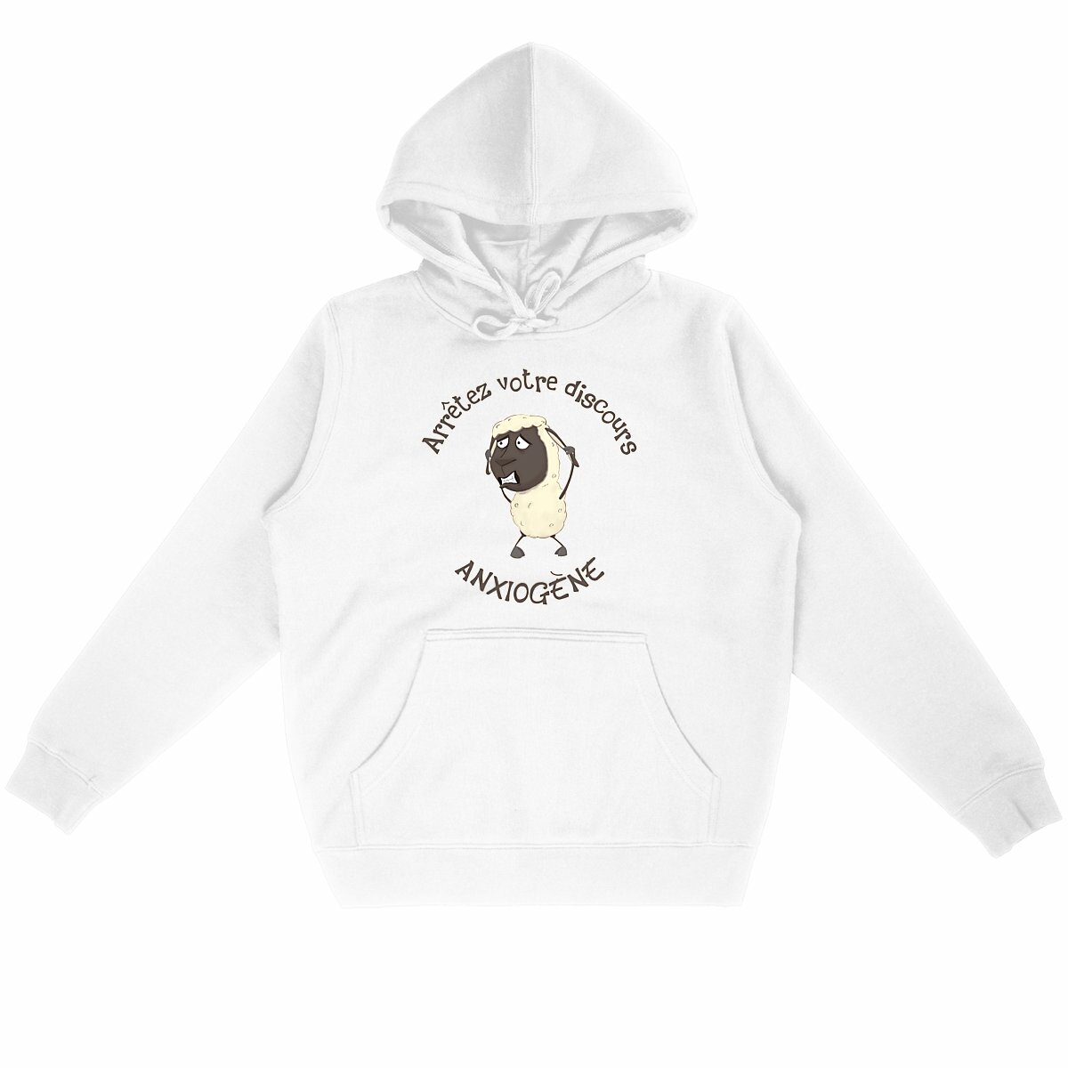 Toi aussi, tu as déjà entendu cette phrase culte : « Arrêtez votre discours anxiogène ! » car il est plus facile de nier la réalité lorsqu’elle déstabilise ? Ce sweat illustre cette absurdité avec un mouton angoissé suppliant qu’on arrête de lui énoncer les faits. Un design sarcastique qui met en lumière, avec humour, ceux qui rejettent tout ce qui les dérange. Méfie-toi du gouverne-MENT !