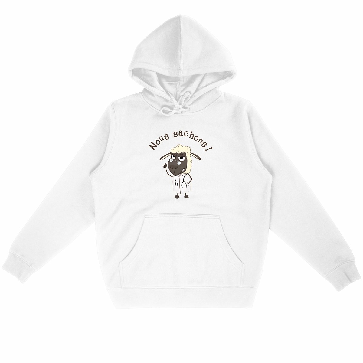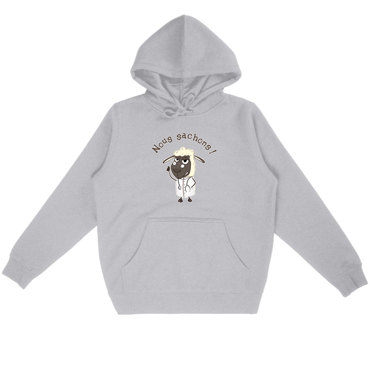 Parce qu’on a tous croisé un « expert autoproclamé » qui pense en savoir plus que les vrais spécialistes ! Ce sweat met en scène un mouton en blouse de médecin, l’air savant, déclarant fièrement « Nous sachons ! ». Un clin d’œil satirique aux amateurs de théories du complot qui rejettent la science… tout en prétendant tout comprendre mieux que tout le monde.