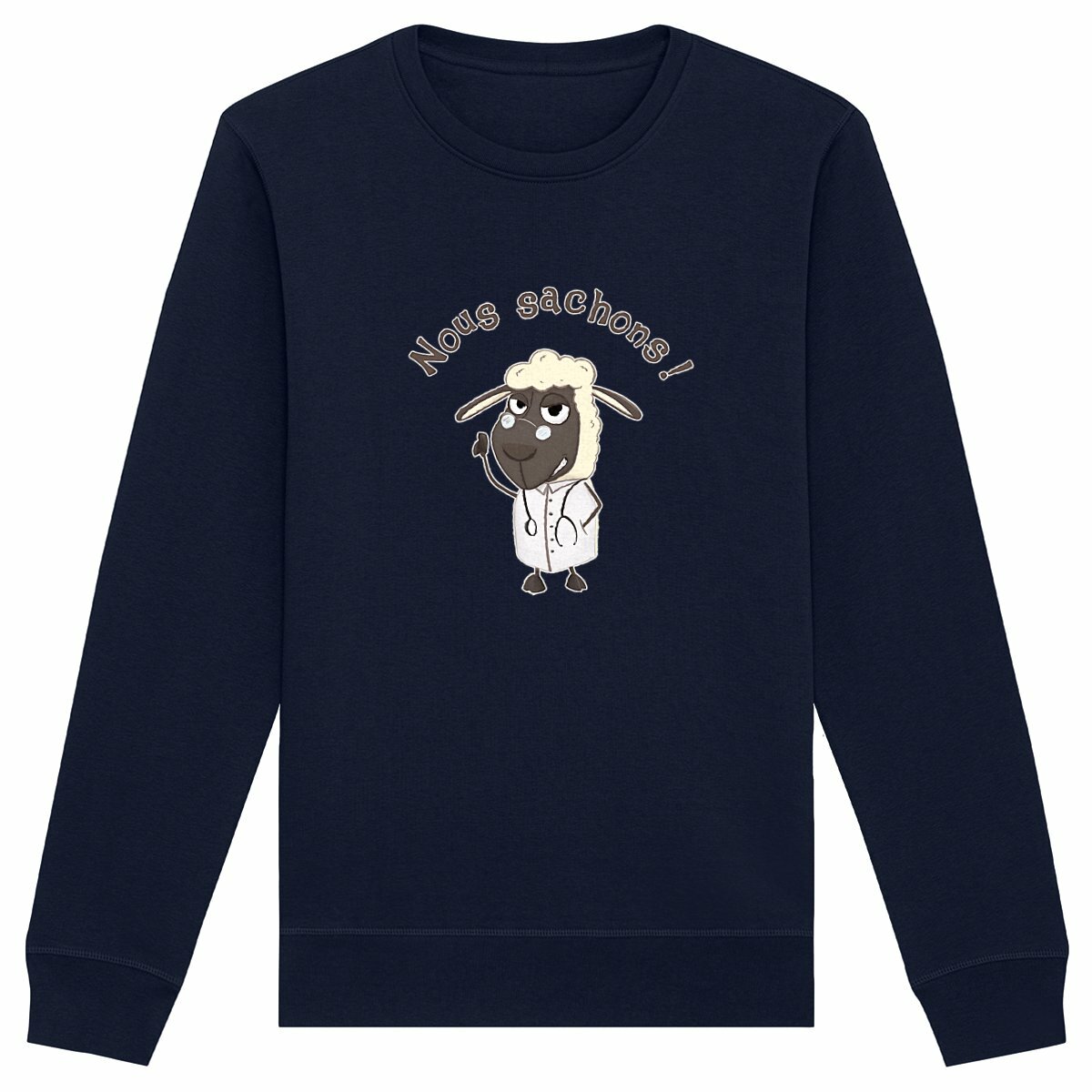 Un sweat humoristique et satirique pour ceux qui aiment pointer du doigt les pseudo-experts autoproclamés ! L’illustration met en scène un mouton en médecin savant, déclarant fièrement « Nous sachons ! », une pique moqueuse envers les adeptes des théories du complot qui pensent en savoir plus que les spécialistes. Un design parfait pour allier style et ironie !