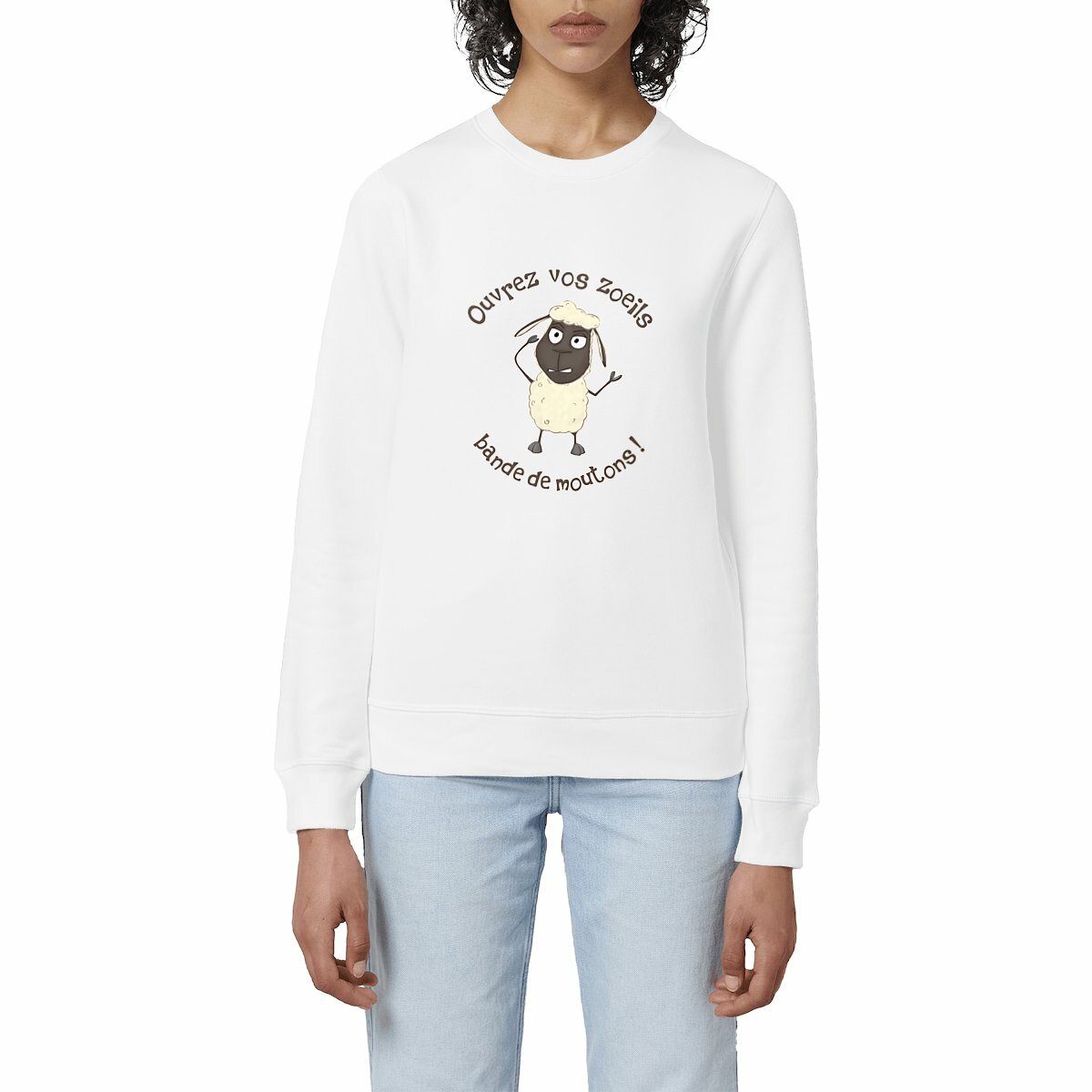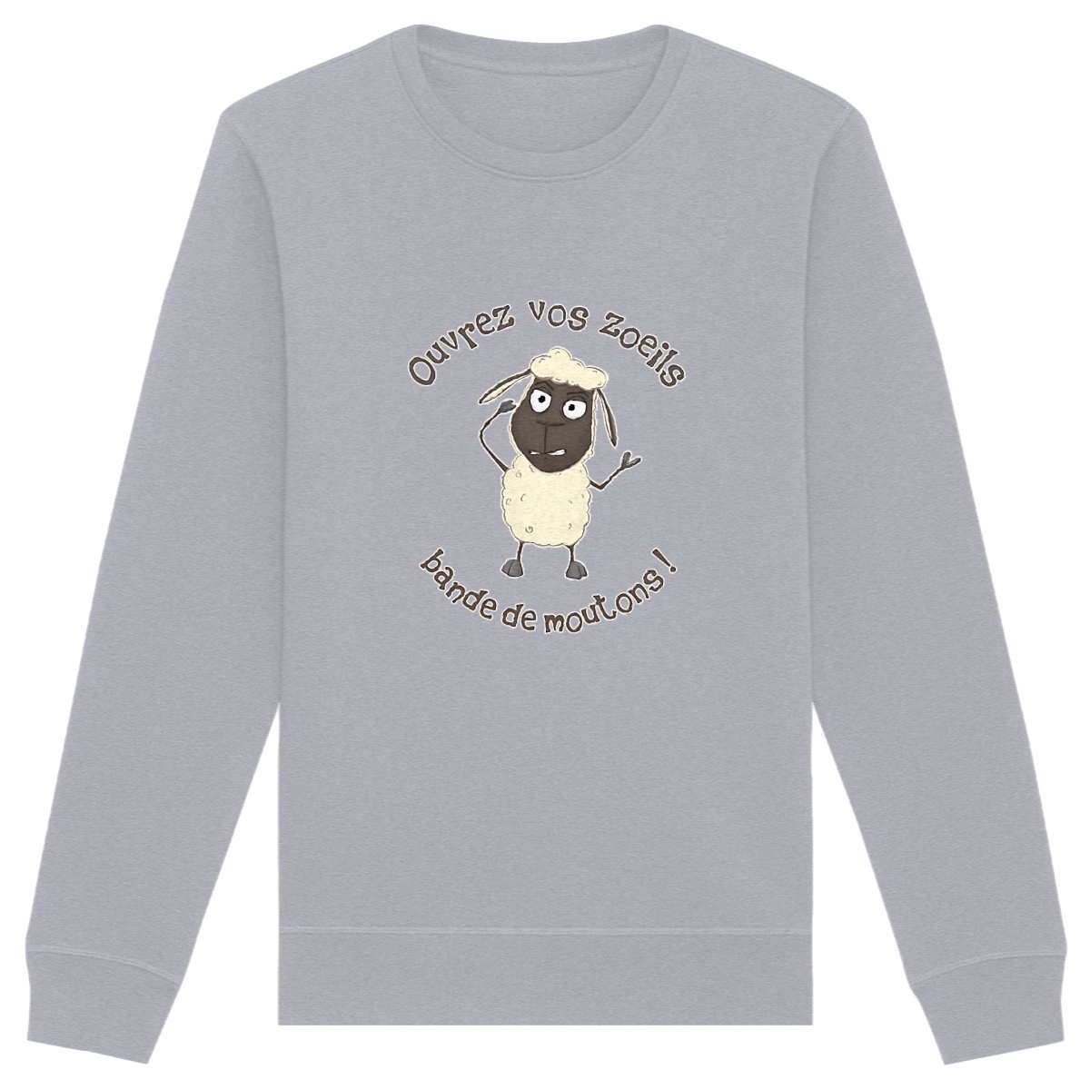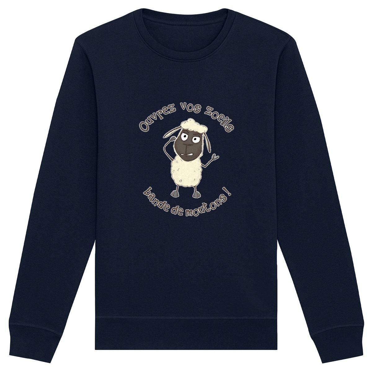 Un sweat humoristique et caustique qui fait mouche ! Son illustration met en scène un mouton consterné, lançant un ironique « Ouvrez vos zoeils, bande de moutons ! », un clin d’œil moqueur aux complotistes persuadés d’être les seuls pleinement conscients de ce qu’il se passe autour d’eux. Parfait pour ceux qui aiment le second degré et les piques bien placées !