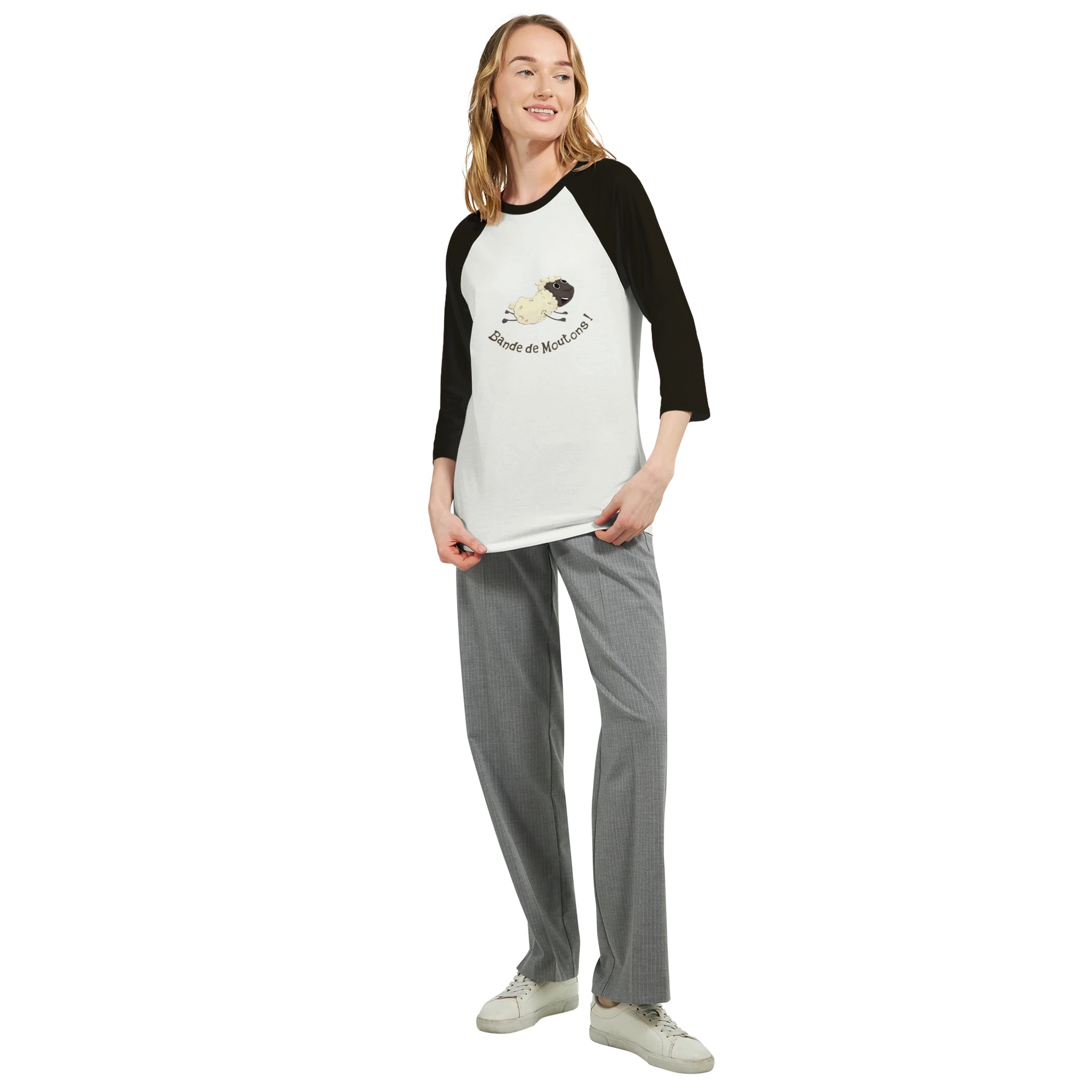 Tu cherches un t-shirt qui sort du lot ? Ce t-shirt classique à manches 3/4 est fait pour toi. Avec son illustration d’un mouton joyeux qui gambade, l’air galopin et fripon, tu affiches ton humour tout en lançant un clin d’œil aux débats d’aujourd’hui. Sur la toile, certains traitent les autres de « moutons »… mais ne suivent-ils pas eux-même aveuglément leur propre troupeau ? Toi, tu as choisi de rester léger, libre et de ne pas te prendre la tête.