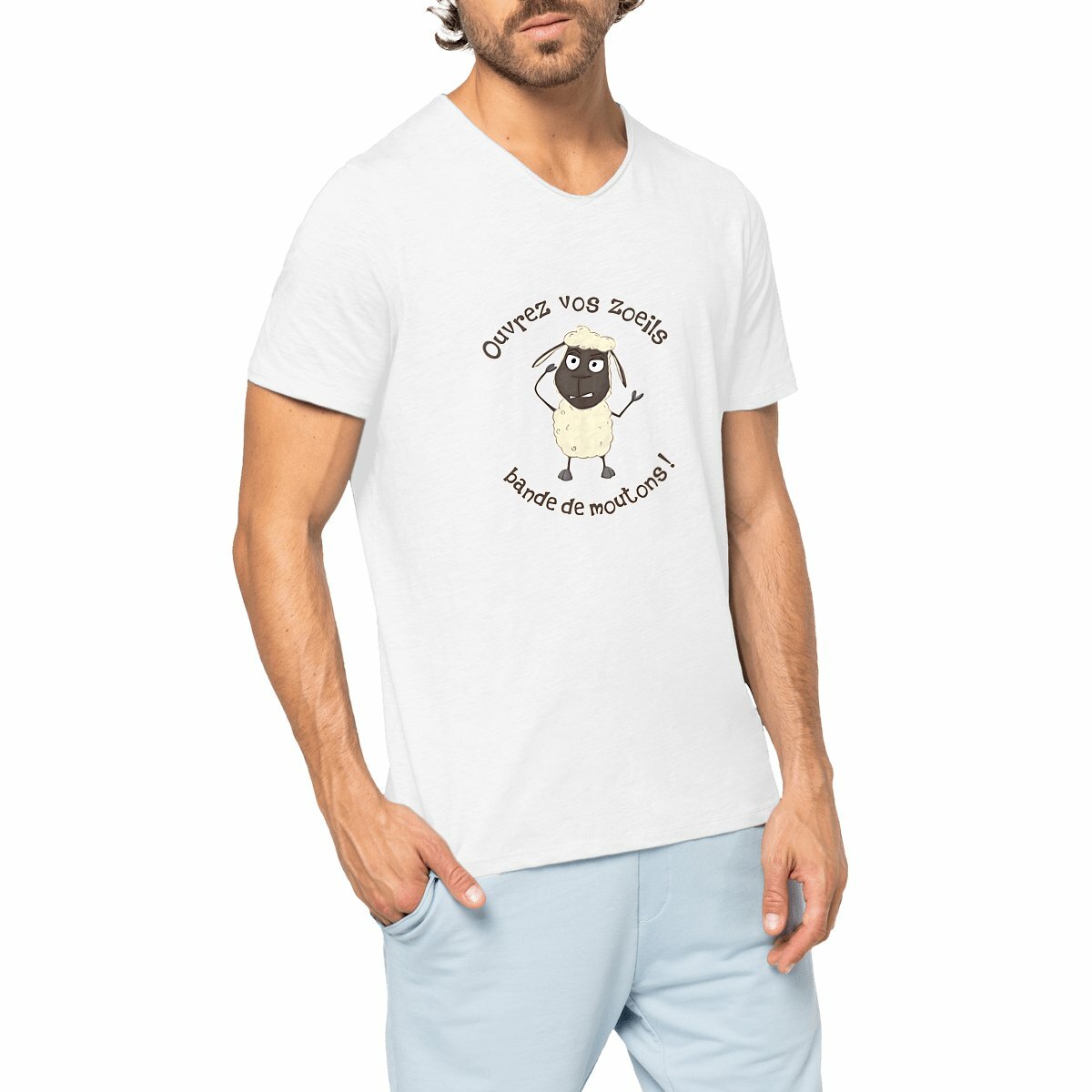 - Un design qui pique (mais juste comme il faut) : Un mouton consterné lâchant un « Ouvrez vos zoeils, bande de moutons ! »… L’ironie est totale et le message, imparable.