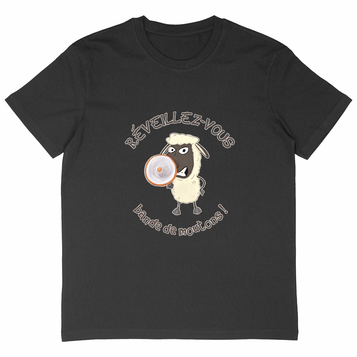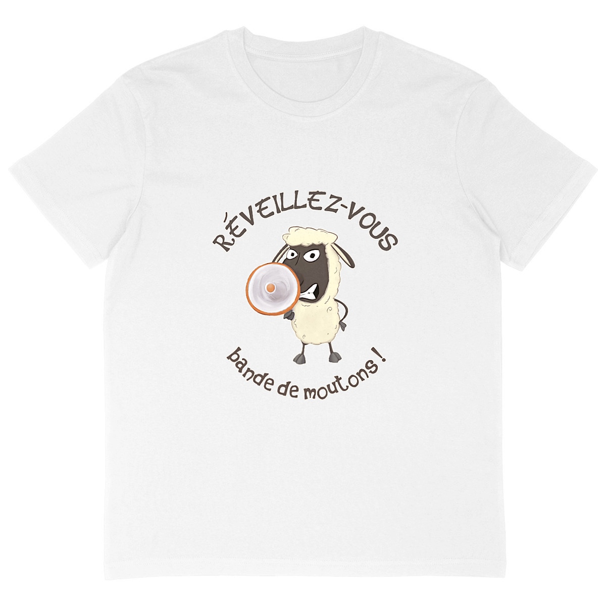 Parce qu’il n’y a rien de plus ironique qu’un mouton qui traite les autres de moutons, ce t-shirt oversize est fait pour toi si tu aimes l’humour grinçant ! Sur l’illustration, un mouton furieux crie dans un mégaphone : « Réveillez-vous, bande de moutons ! ». Une façon satirique de se moquer (gentiment ?) de ces complotistes qui hurlent à l’éveil… tout en suivant, eux aussi, leur propre troupeau.