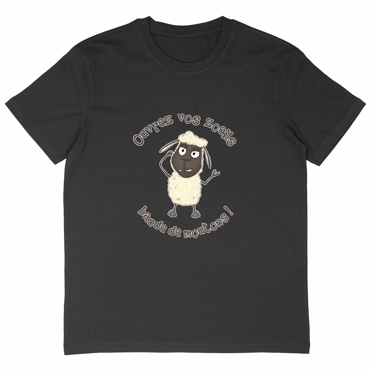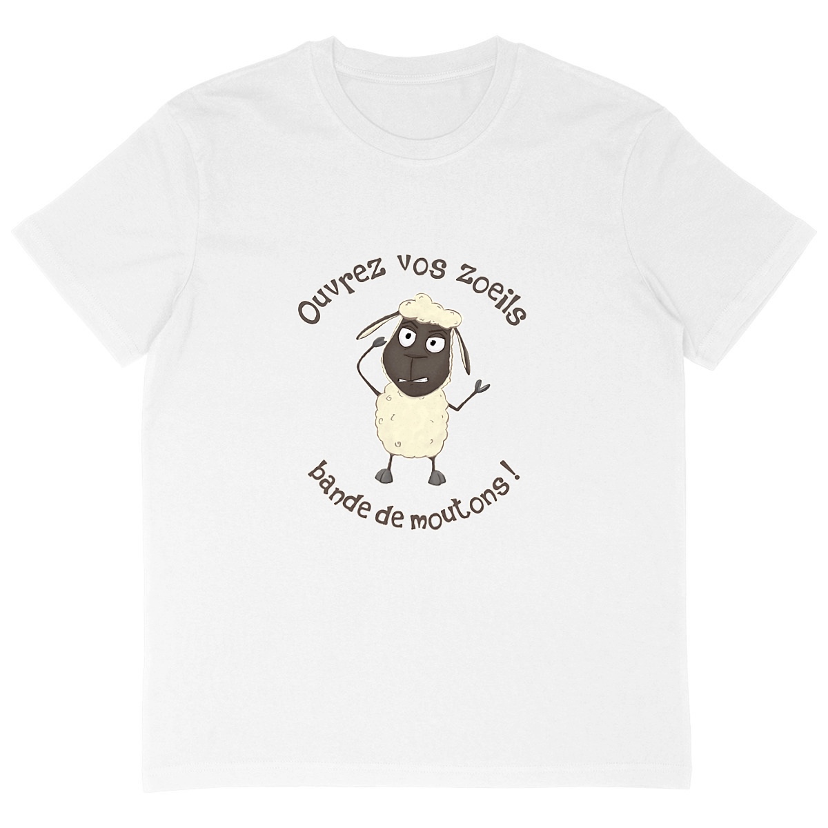Si tu as déjà entendu cette phrase dans une discussion enflammée sur “la vérité cachée”, ce t-shirt oversize est fait pour toi. Avec son illustration à l’humour caustique, il met en scène un mouton consterné, lançant : « Ouvrez vos zoeils, bande de moutons ! ». Un clin d’œil acerbe à ces complotistes convaincus d’avoir tout compris… et qui répètent en boucle à ceux qui ne pensent pas comme eux d’ouvrir les yeux.